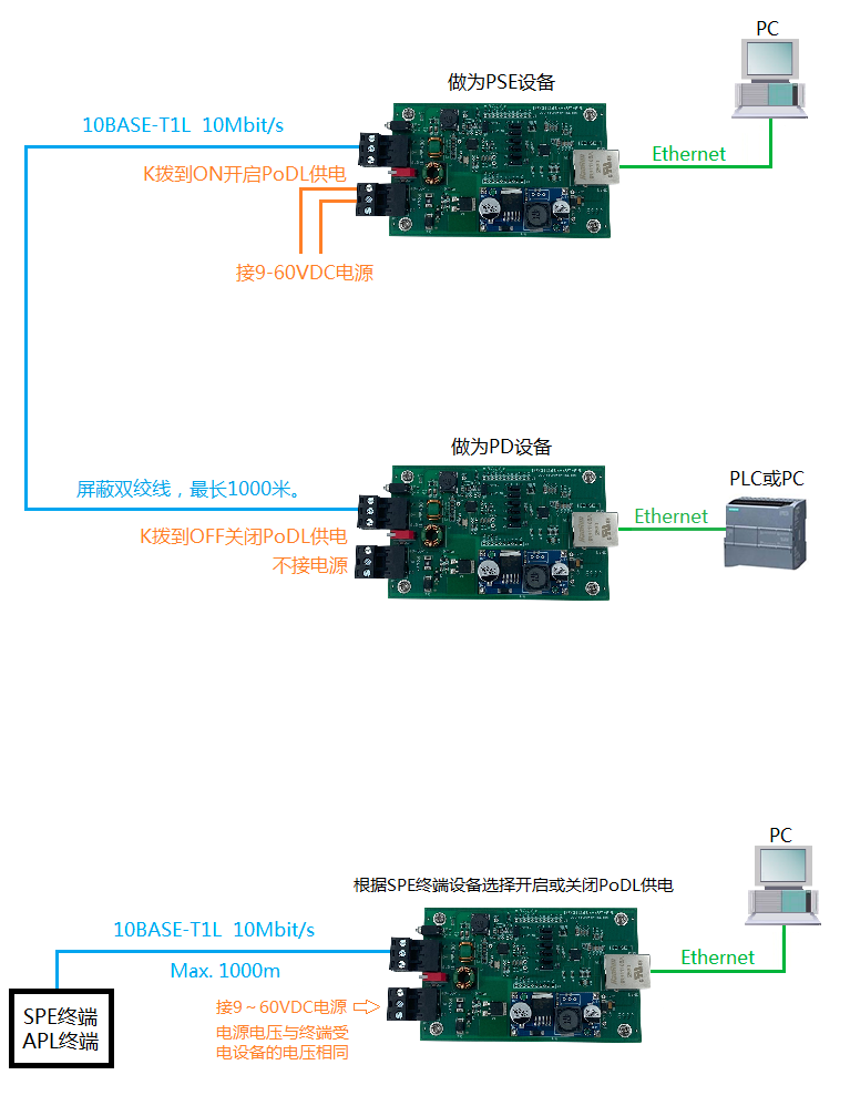 SPE通訊協(xié)議 | IEEE802.3cg-2019,10Base-T1L,數(shù)據(jù)透明傳輸,支持所有以太網(wǎng)上層協(xié)議,如PROFINET、MODBUS TCP/IP、Ethernet/IP、CC-Link IE、POWERLINK 等。 |